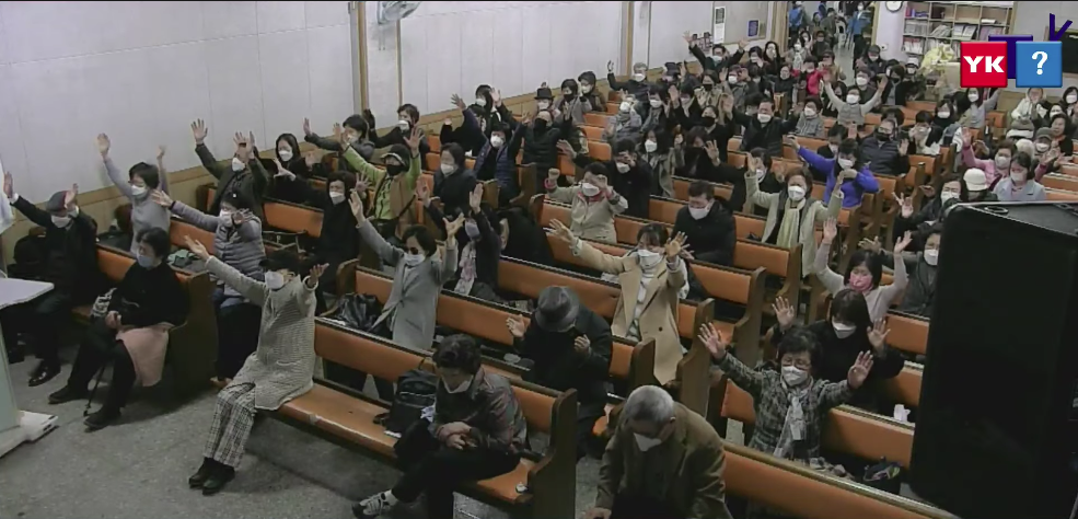 하지만 일부는 가깝게 앉아 있는 걸 볼 수 있고 교회관계자가 계속 여기저기를 다니는 모습이나.. 일부는 마스크를 착용하지 않는 모습도 보여 여기에 확진자라도 참여했더라면 확산되는건 시간문제겠죠..