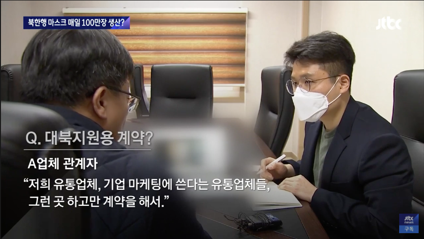 팩트체크 했다는 JTBC는 조달청.. 통일부..그리고 마스크 제조업체에 가서 인터뷰를 했죠..