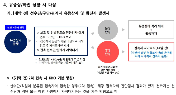 또, 10개 구단의 홈구장에서 원정팀 선수들의 동선을 구체적으로 명문화하는 등 감염 예방 방안 대책을 제시했습니다.