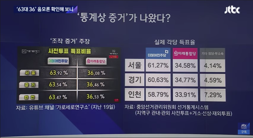 그렇겠죠. 그런데 유튜브에서는 얼마 전 "아이돌 경연프로그램 순위 조작 사건과 비슷한 양상이다" 이런 주장이 나오는데, 실제 선거하고 방송사 ARS 투표하고 비교를 할 수 없는 게 아니겠어요?