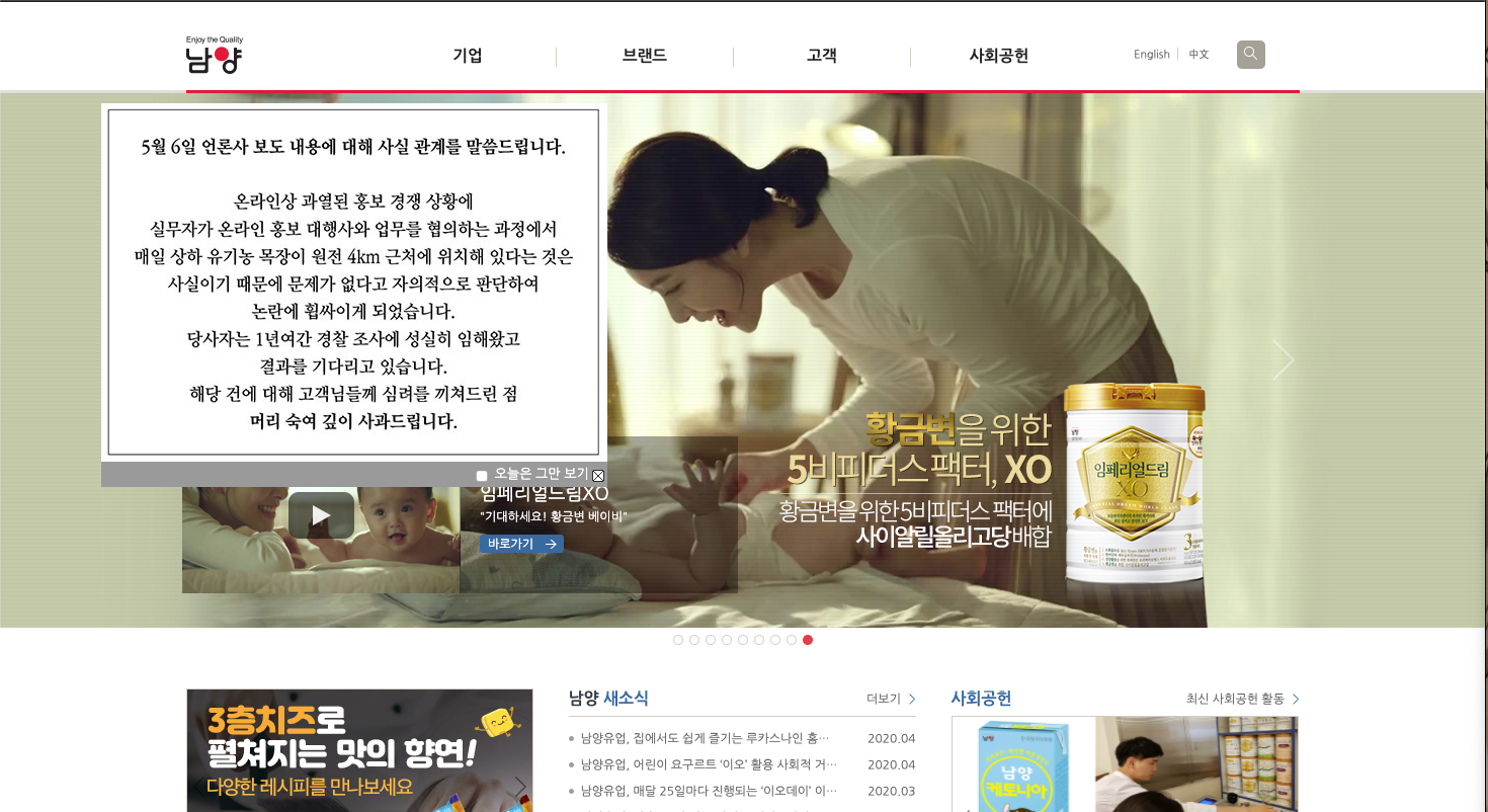 관련뉴스 : 경찰, 경쟁사 비방글 유포 혐의 남양유업 회장 입건