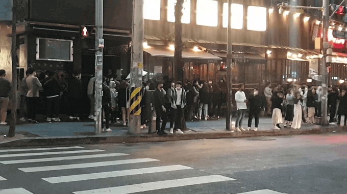 하지만 클럽 밖에는 마스크를 턱밑까지 내린 손님들이 길게 줄지어 다닥다닥 붙어 있어 마스크 착용의 실효성은 없어 보였다.