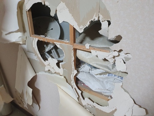 조명등 껍데기, 뜯은 벽지, 스티로폼, 석고보드, 나뭇조각 등 사실상 ‘폐기물’이라고 부를 수 있는 건 벽 안쪽에서 다 나왔다.