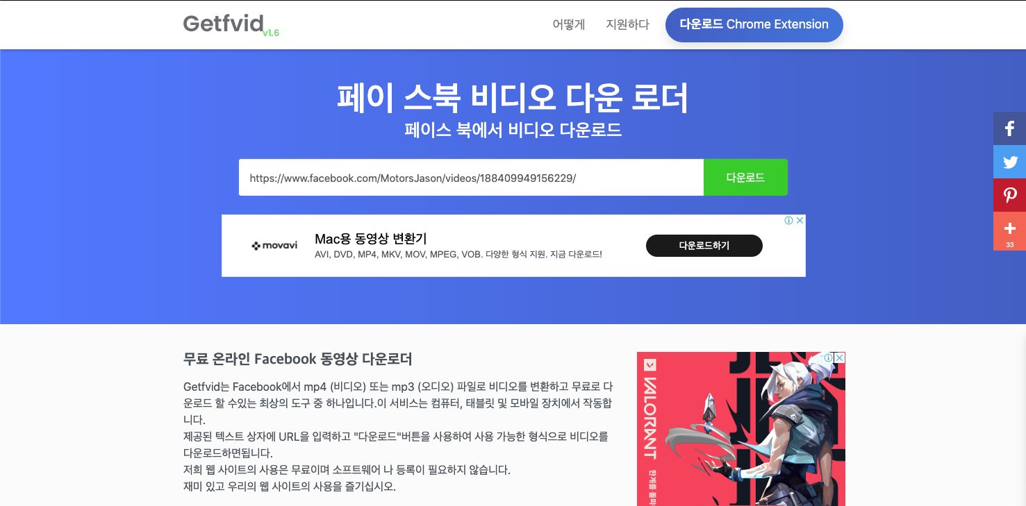 페이스북에 올려진 동영상을 다운로드 할 방법입니다..