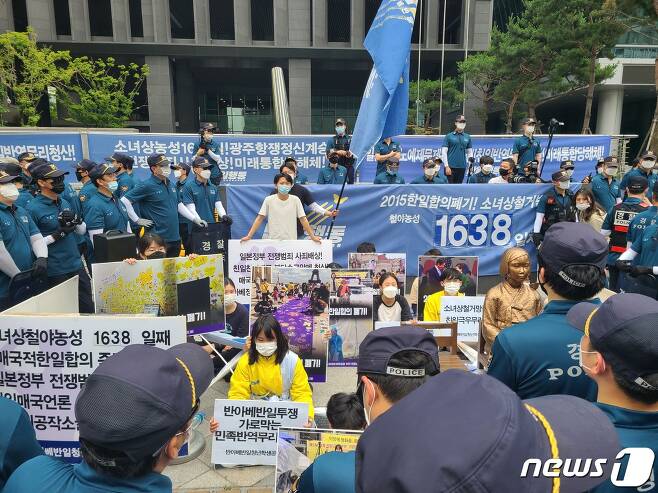 한편 24일 정의연의 제1445차 '수요집회'는 28년 만에 장소를 옮겨 진행된다. 보수단체인 자유연대가 해당 장소에 먼저 집회신고를 했기 때문이다.