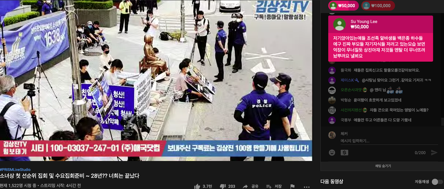 그외에 이들 대학생들을 지지한다고 동영상 스트리밍을 하는 이들도 있기는 합니다..