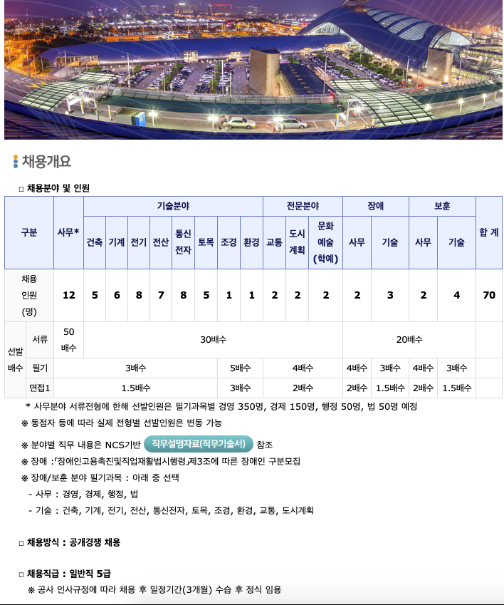 참고링크 : 인천국제공항공사 채용(일반직) 인크루트