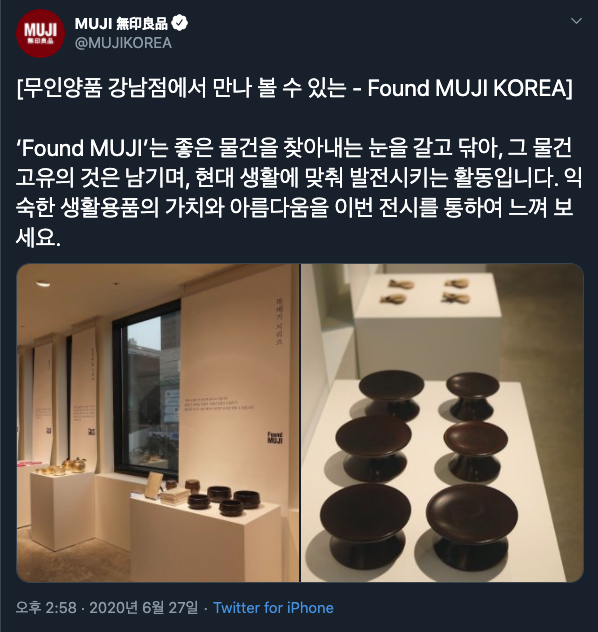 한일 관계는 여전히 악화일로를 걷는 중이고, 불매운동 역시 일상으로 전환돼 계속되고 있다. 이런 가운데 일본기업인 무인양품이 한국 전통문화를 마치 '자기 전통'인양 왜곡해 현지화 전략을 꾀했다는 비판이 거세다.