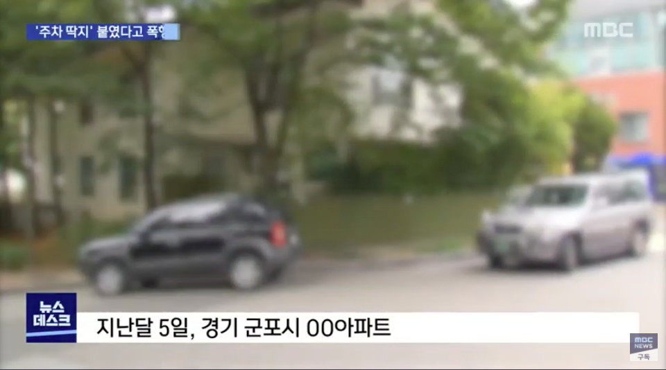 주차 위반 차량에 딱지를 붙였다는 이유로 차 주인이 아파트 경비원을 폭행했습니다.