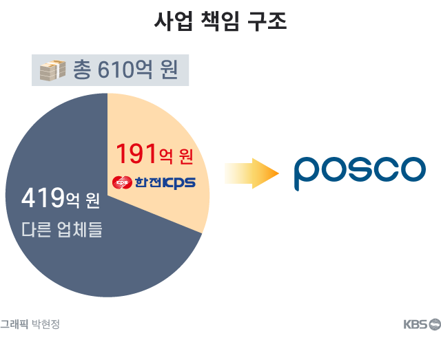 한전KPS가 일본 업체 등이 생산한 터빈과 보일러를 광양 제철소에 공급·설치하는 사업인데, 총 사업비 610억 원 중 부품 가격을 포함해 다른 업체들이 책임져야 하는 금액이 419억 원 정도이고 나머지 191억 원은 설치를 담당하는 한전KPS 사업 영역이었습니다. 문제는 약속된 사업 기한을 못 맞추거나, 터빈 성능이 기준에 미달하는 등 사업에 차질이 생겼을 때 물어야 하는 위약금을 모두 한전KPS가 부담하는 조건으로 계약서가 작성돼 있었던 겁니다.