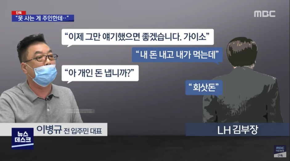 LH 부장이 참 대단한가 봅니다.. 임대아파트에 사는 이들을 하인정도로 생각하는 것 같으니.. 그렇지 않고서야 본인이 주인이라는 발언이 나올리 없겠죠..