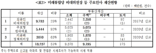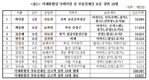 관련뉴스 : "통합당 의원 40% 다주택..상위 10% 1인당 부동산재산 106억원"(종합)