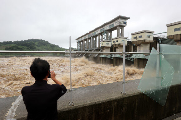 군남댐 수위는 10일 오후 9시40~50분 계획홍수위(40m)에 근접한 35.49m를 기록한 뒤 서서히 낮아져 11일 오전 8시10분 현재 31.14m를 기록하고 있다.