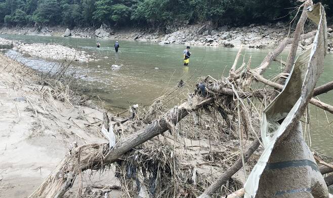 한 낚시꾼은 "물이 불었다가 빠져야 쏘가리를 많이 잡을 수 있는데 지금이 적기"라며 "(수해 지역이어서) 자제해야 하는데 손맛을 포기할 수는 없다"고 아무렇지 않다는 듯 말했다.
