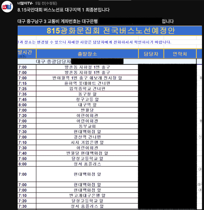 분명 사랑제일교회측에서 운영하는 너알아tv-에서 교통편을 안내했었습니다.. 거기에 공개된 연락처와 계좌번호를 확인해 보면 이미 알 수 있는데 명단을 안준다 합니다...