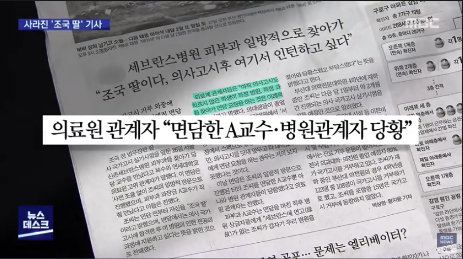 이 기사는 의대 정원 확대 문제로 부산대 의전원생 대부분이 국가고시를 거부한 상황에서 이 대학에 다니는 조 전 장관의 딸은 시험을 보기로 했다는 내용과 함께 보수 유투버들과 의대생 사이에서 급속히 퍼졌습니다
