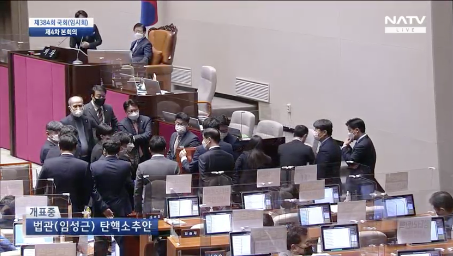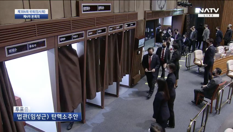국회에서 본회의가 열리고.. 대정부질문이 있기전.. 임성근 부장판사에 대한 탄핵소추가 가결되었습니다..