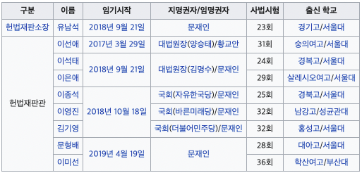 다만 헌재 재판관 9명중 5명이 합헌.. 4명이 위헌입니다. 위헌입장을 낸 4명 유남석·이석태·김기영·문형배 재판관은 모두 문재인 대통령이 임명을 했고.. 일부는 지명도 했으며.. 더불어민주당측에서 지명한 재판관도 있네요.. 그럼 진보성향의 재판관이 위헌을 낸 것이라 할 수 있을까도 싶군요..