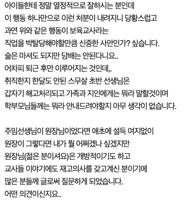 이후 B씨의 해고 처리를 두고 A씨를 비롯해 교사들 간에 의견이 분분한 상태라고. A씨에 따르면 이렇다.