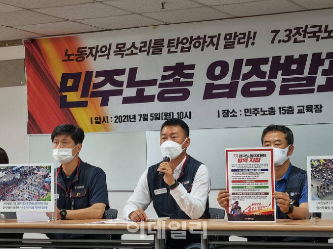 민주노총은 “왜 같은 야외 행사인데 기준이 달라지는가, 민주주의의 근간인 정치사상의 자유와 의사 표현의 자유, 이를 보장하기 위한 집회 결사의 자유는 어디로 갔는가”라고 반문했다.
