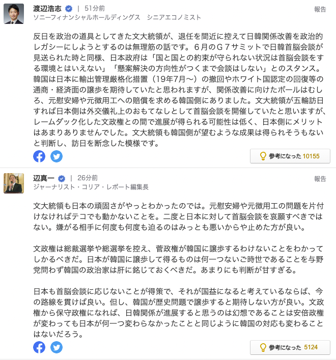 참고링크 : 韓国・文大統領 訪日断念と発表