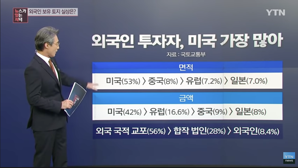 아마 중국인들이 서울 및 제주도의 땅을 많이 사들인다고.. 그래서 중국인들의 땅 및 건물매입을 막아야 한다는 공분이 있는 상황에서 이에대한 YTN의 보도입니다.