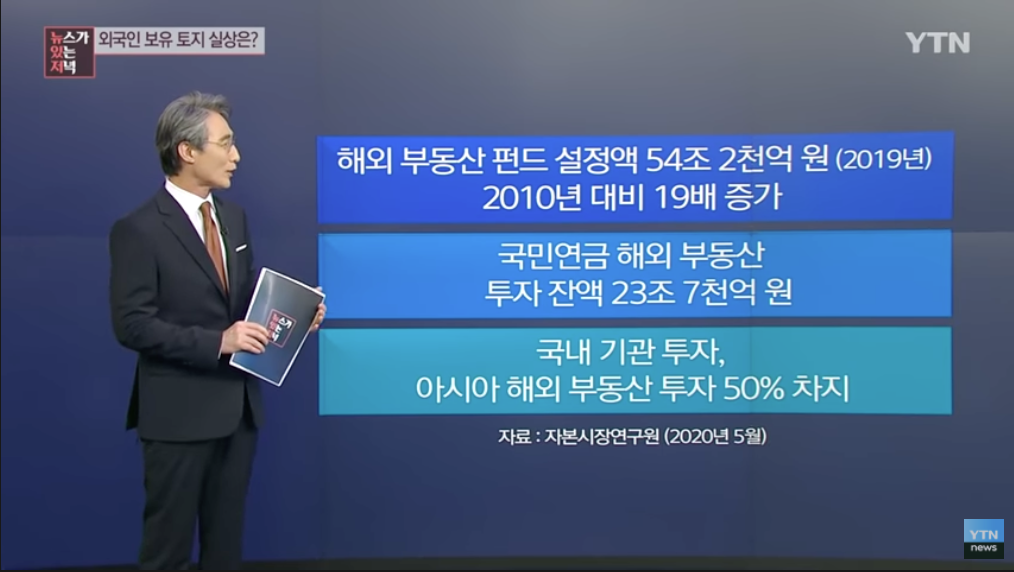 우리 국민연금, 여러분들의 연금이 해외 부동산에 투자한 잔액이 23조가 넘습니다. 그리고 우리나라 기관투자자들이 해외 부동산에 투자한 액수가 아시아 전체 해외 부동산 투자의 절반입니다.