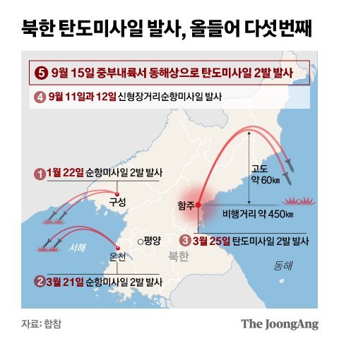 올해 들어 북한의 무력 시위, 이번이 다섯 번째