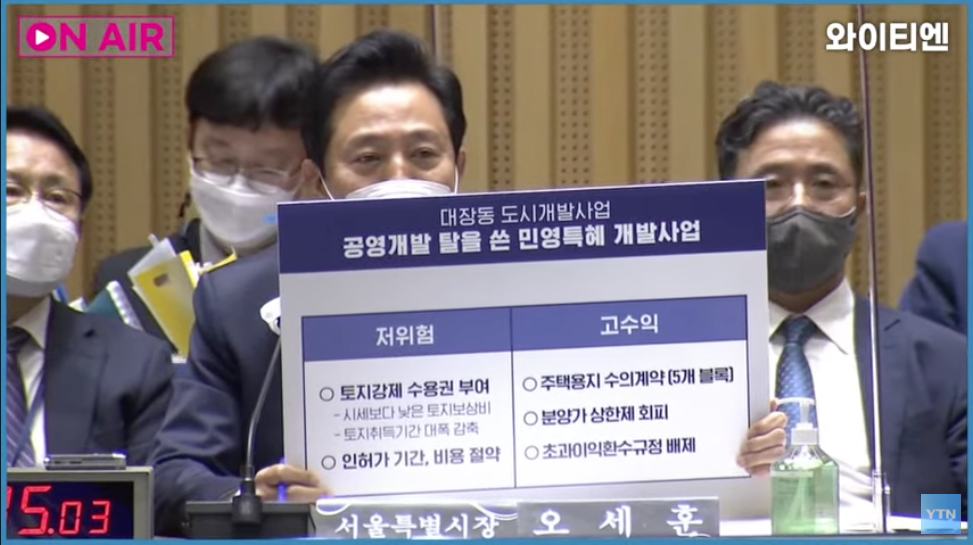 더욱이 오세훈 시장도 경기도 성남 대장동에 관련된 자료도 준비했네요.. 본인 입으로는