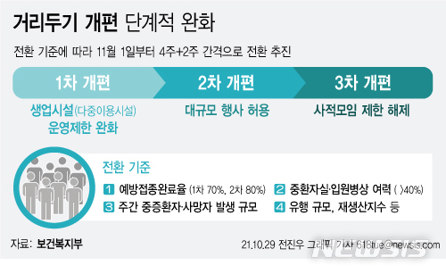 "오는 11월1일 1차 개편부터 일부 시설에 적용한다. 이후 대상시설 감염 전파 등 위험도를 평가하고, 2차 개편 이후 적용 지속 여부를 검토할 예정이다."