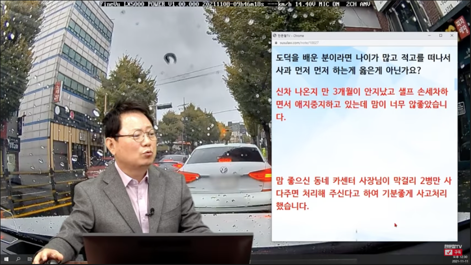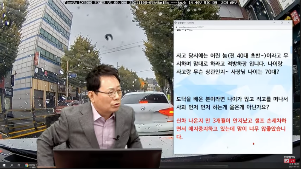 이 사연은 한문철TV에서 공개한 영상으로 11월 14일에 공개한 13536회 영상입니다.