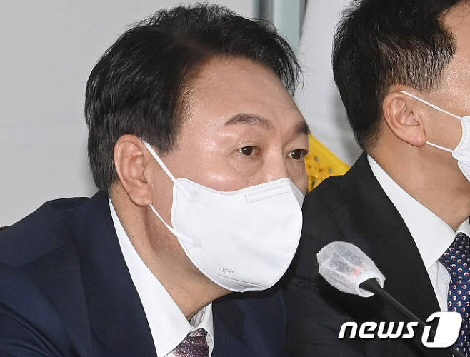 (서울=뉴스1) 최은지 기자,유새슬 기자 = 윤석열 국민의힘 대선 후보는 27일 선대위 직능총괄본부장을 맡고 있는 김성태 전 의원이 딸 채용 비리와 관련해 재판을 받고 있는 상황과 관련, 본부장직 사퇴를 선언한 것에 대해 "본인이 워낙 강하게 (의사표현) 하셨기 때문에 수용하기로 했다"고 말했다.