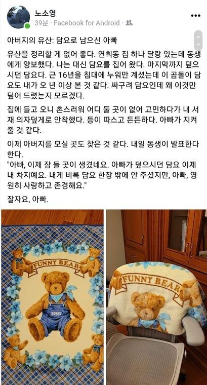 노소영씨는 SNS에 글을 올렸네요.. 이제 아버지를 떠나보내는 딸의 심경으로 말이죠.. 안식할 자리를 찾았으니.. 이젠 노태우씨 유족들은 매년 동화경모공원에 찾아가 자신들의 아버지를 찾겠죠..