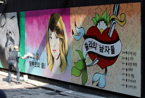[세상논란거리/사회] - 기념사진 찍고, 차로 가리고..종로 한복판 '쥴리 벽화' 반응