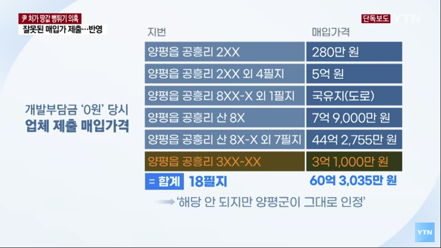 [세상논란거리/정치] - "尹 처가회사 개발부담금 '0원'..국토부·양평군, 논란일자 뒤늦게 '1.8억 내라'"