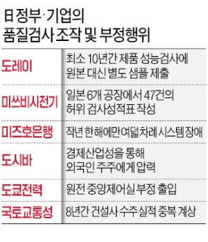 일본 기업과 제품에 대한 신뢰를 무너뜨리는 품질검사 조작과 경영활동의 부정행위는 일본 경제계 전반에서 잇따르고 있다. 미쓰비시전기는 지난해 일본 6개 공장에서 총 47건의 허위 검사 성적표를 작성한 사실이 발각됐다.