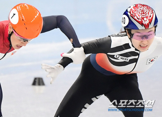 [베이징(중국)=정재근 기자] 0.052초 차이의 초접전이었다. 결승선을 앞두고 추월을 시도한 최민정을 수잔 슐팅이 팔로 막으며 먼저 1위로 골인했다.