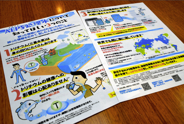 일본 정부는 초등학생용 전단지에서 오염수에 대해 "인간이 먹거나 마시거나 해도 건강에 문제가 없는 안전한 상태"라고 소개했다. 중고등학생용 전단지에는 오염수에 포함되는 방사성 물질인 트리튬(삼중수소)에 대해 "건강에 미치는 영향은 걱정 없다" "세계에서도 이미 바다로 흘려보내고 있다"고 설명했다.