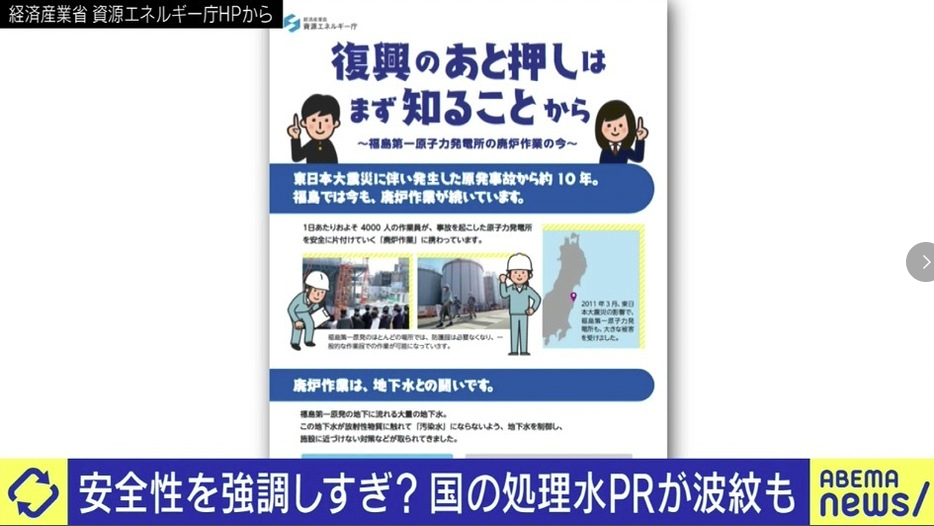 참고링크 : 政府の“チラシ”が回収・配布中止も…福島第一原発の処理水、理解の上での判断を広げるためには?
