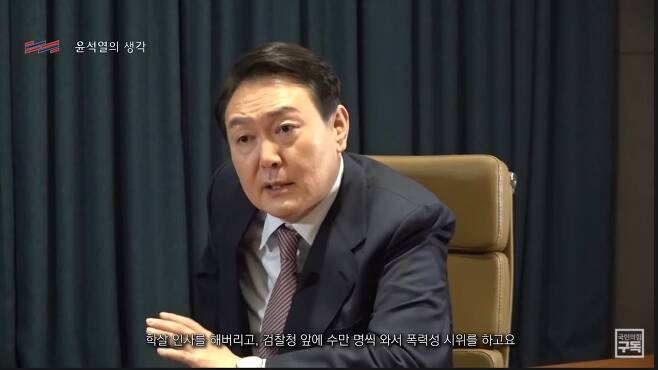 윤 후보가 지난 2월 8일 유튜브 방송에서 한 "(검찰총장 때 마음에 안 드는 수사를 했다고) 검찰청 앞에 수만 명씩 와서 폭력성 시위를 했다"는 발언이 대표적이다.