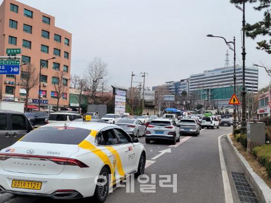 [이데일리 김성훈 기자] 지난 17일 오후 서울 지하철 4·6호선 삼각지역. 한강대로와 이태원로가 만나는 교차로에 차들이 쉴새 없이 지나갔다. 평일 오후임을 감안하더라도 적잖은 차량이 쌓이면서 교통 체증을 유발했다.