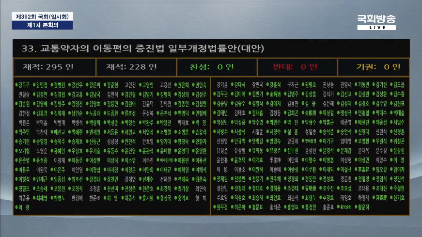 더불어민주당.. 국민의힘..정의당 대부분 출석해서 통과시켰으니까요.. 거기다.. 통과시킨 내용을 보면.. 지하철내 엘리베이터등의 설치에 대한 내용은 없습니다..