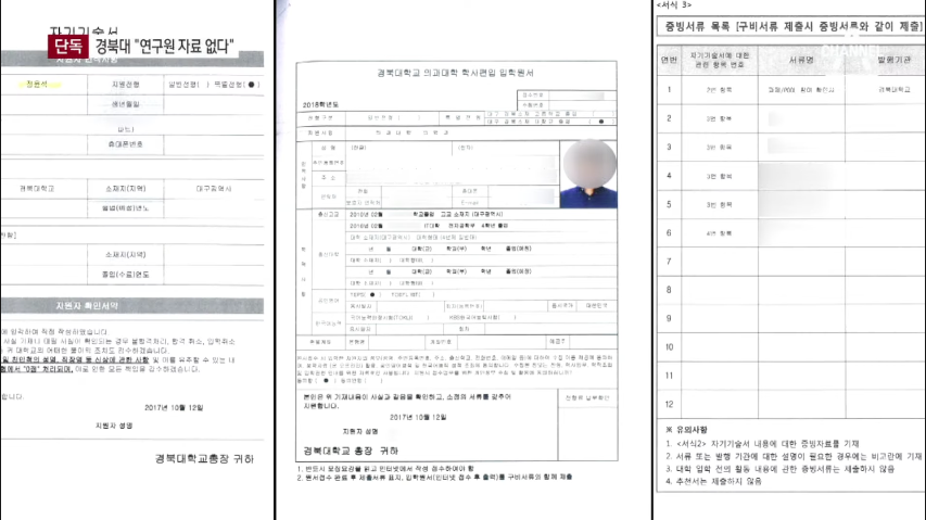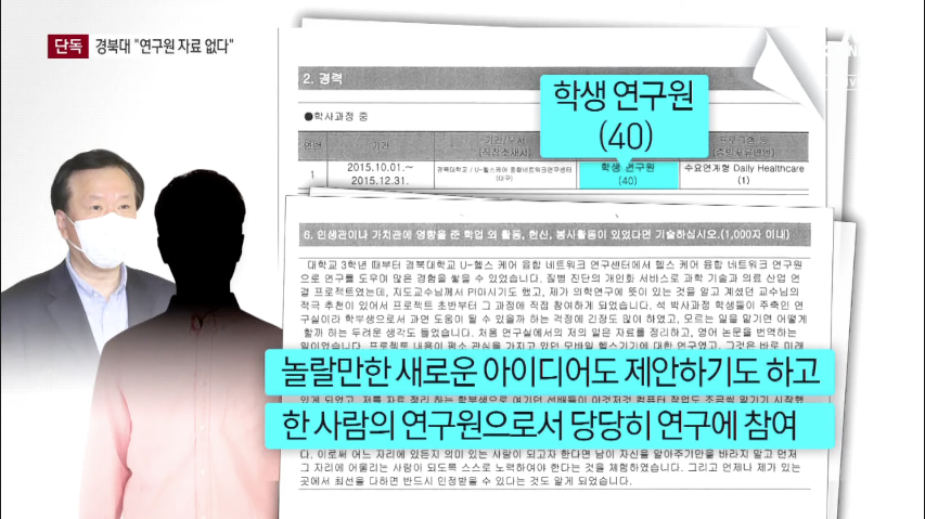 경북대 프로젝트에 학생 연구원 신분으로 참여를 했고, 이 경력을 의대편입 때도 제출했습니다만 정작 일한 ‘기록’이 없다는 겁니다.