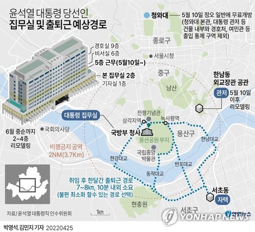 그러다 한남동 외교장관 공관으로 대통령내외가 들어가면.. 한남동 외교장관 공관고 국방부청사간 도로는 매일 교통통제를 할 터.. 그때는 다시 언론사가 출퇴근 예상경로를 확인해서 보도하지 않을까 싶으니.. 그때가서 다시 출퇴근 경로를 수정하는게 어떨까 싶습니다.