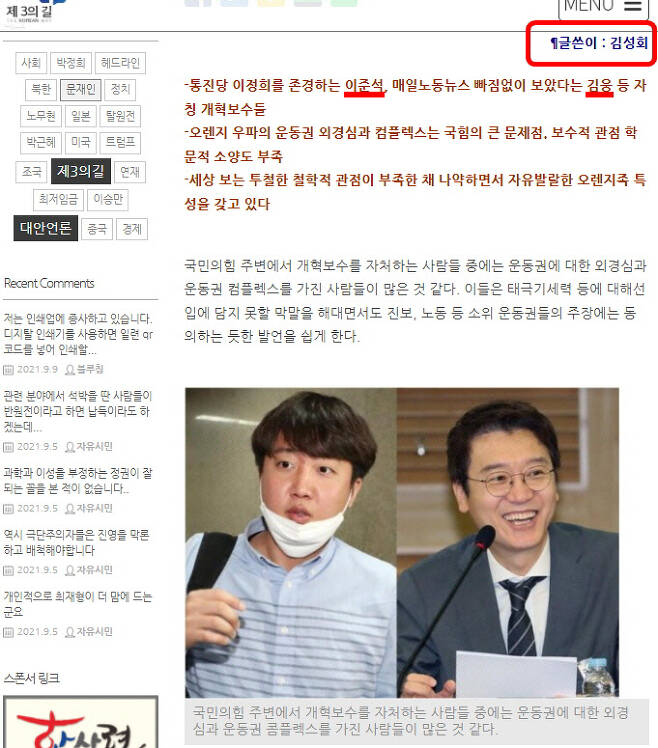 참고링크 : 자칭 개혁보수들의 운동권 외경심과 컴플렉스 - 제3의 길