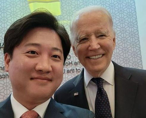 이 대표는 전날 국립중앙박물관에서 열린 환영 만찬에 참석해 페이스북에 바이든 대통령과 함께 찍은 ‘셀카’를 올리며 “바이든 대통령님, 영광입니다(President Biden, it‘s an honor)”라는 글을 남기기도 했다.