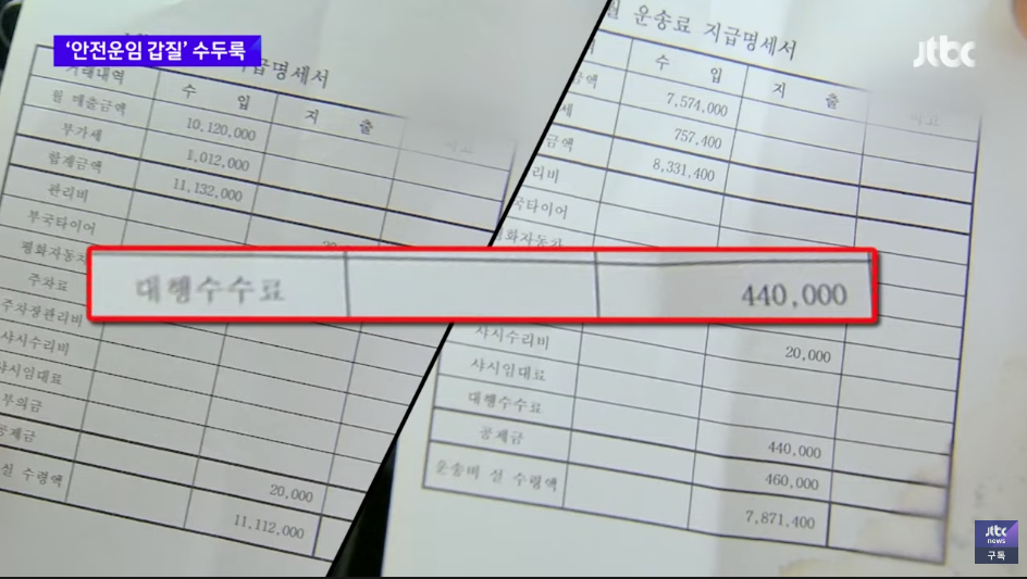 [A씨/화물노동자 : (운수사가) 사무실 운영을 하기는 어려우니 업무 대행 수수료나 그런 항목 만들어서 수수료를, 일정 금액을 떼기 시작했습니다. 보통 6%, 7% 정도인데…]