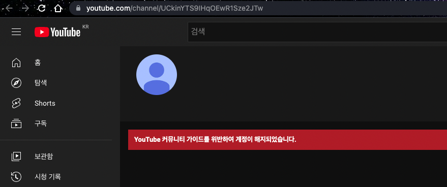 관련해서 유튜브에서 검색을 해도 들어가지진 않고.. 관련 주소로 들어가면.. 커뮤니티 위반으로 계정해지가 되었다는 구글 유튜브의 안내만 나옵니다..