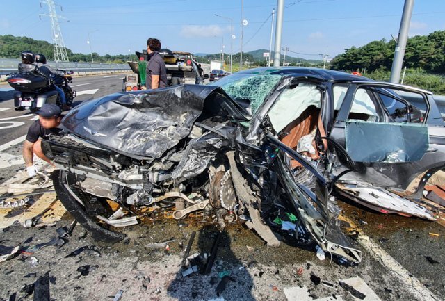 이 사고로 60대 제네시스 운전자가 사망했고 동승자인 60대 아내는 경상을 입었습니다.