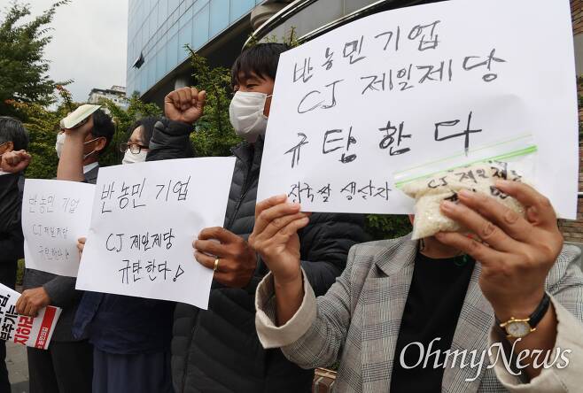 전국쌀생산자협회와 전국농민회총연맹, 한국농축산연합회, 농민의길 대표자들이 CJ... 제일제당 본사 앞에서 기자회견을 했다고 합니다.